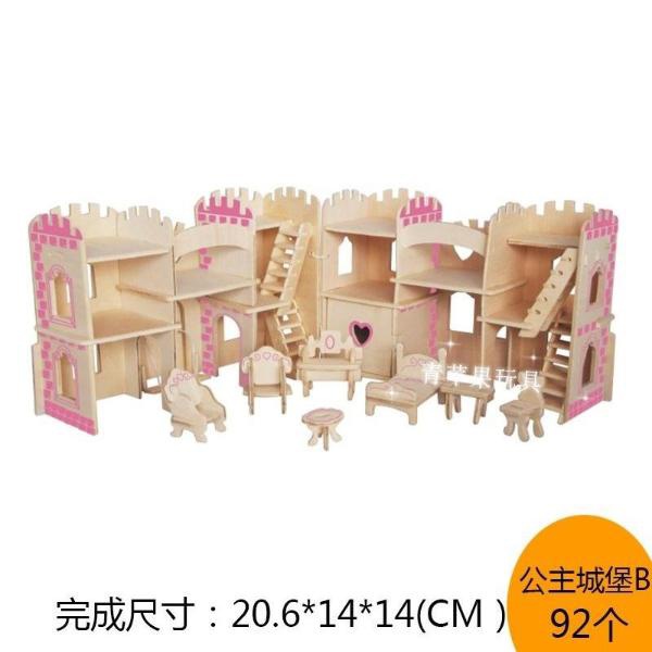 城堡3d立体拼图儿童益智玩具女孩房子建筑别墅木质模型礼物拼装。热门设计联盟服务商
