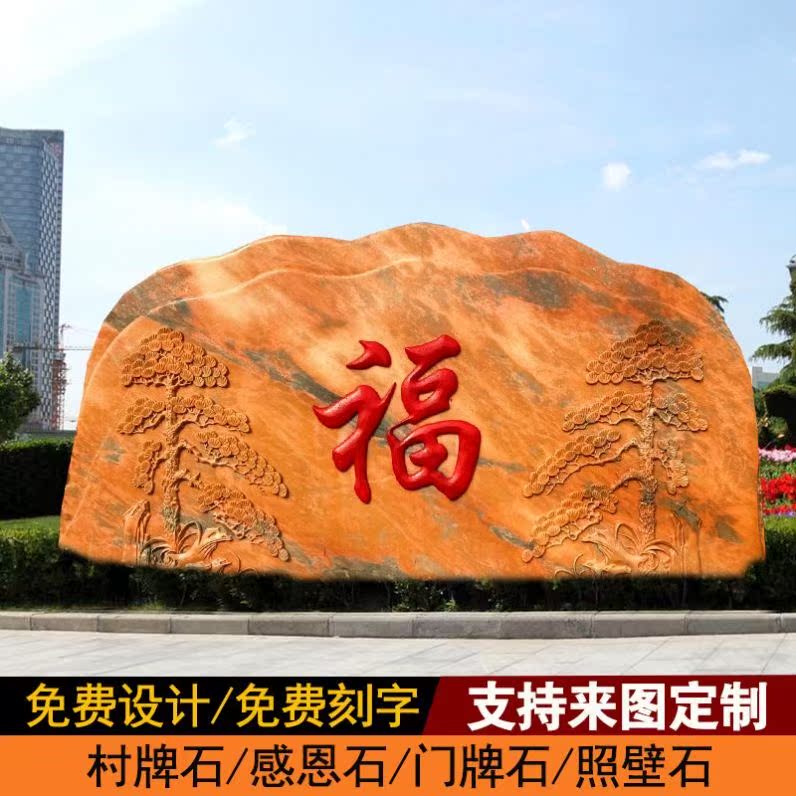 大型晚霞红景观石天然风景石自然石村牌石头刻字庭院园林校园户外热门设计联盟服务商