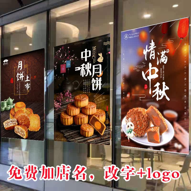 2021中秋月饼广告海报超市蛋糕店贴纸商场装饰布置自粘广告墙贴热门设计联盟服务商