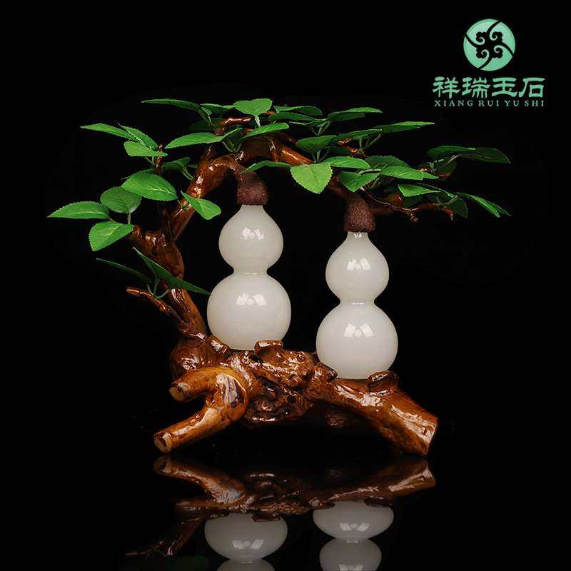 天然玉石葫芦摆件客厅招财风水摆设办公室酒柜装饰品乔迁商务礼品热门设计联盟服务商