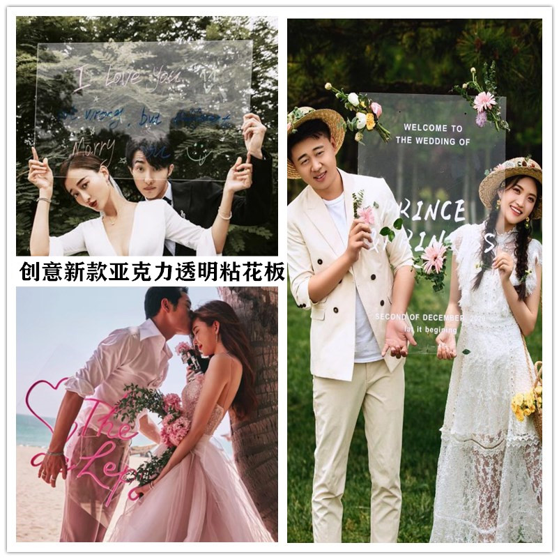 影楼创意外景婚纱照摄影道具贴花透明亚克力板旅拍森系拍摄手拿板热门设计联盟服务商