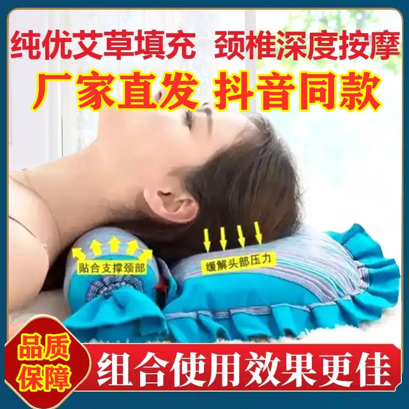 抖音款耀通艾草组合枕头优质艾草填充亲肤粗布面料圆柱加方形设计热门设计联盟服务商