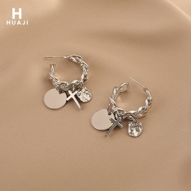 花迹十字架圆圈耳环女欧美小众设计感金属耳圈冷淡风个性耳饰热门设计联盟服务商