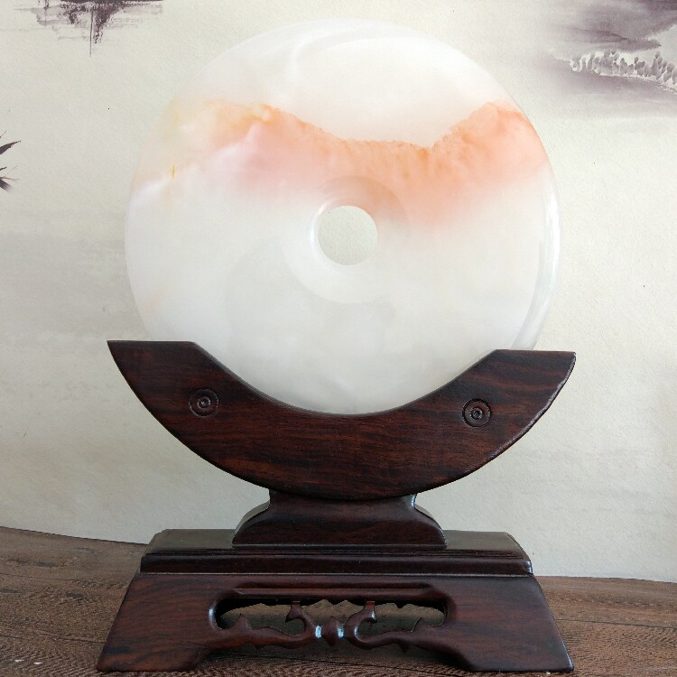 天然红花冰玉平安扣摆件家居时尚玉扣和氏璧摆设招财玄关装饰礼品热门设计联盟服务商